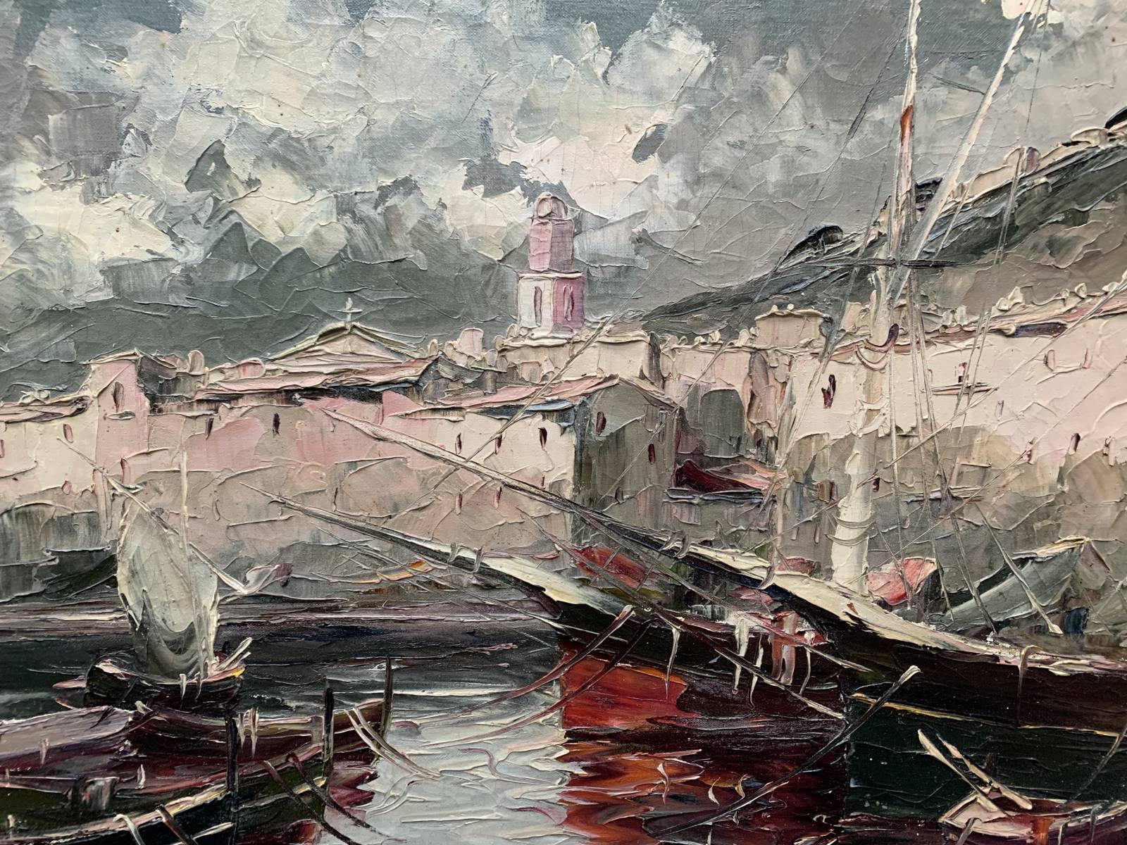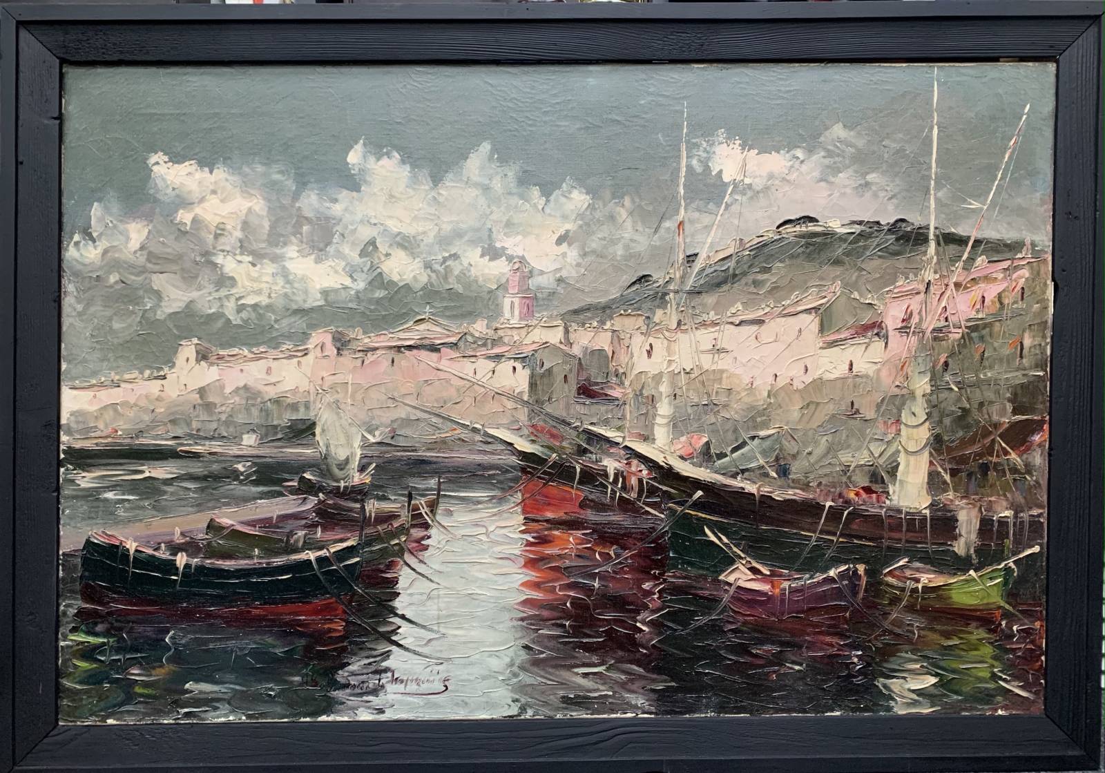 GRAND TABLEAU HST - ANDRE SALOMON LE TROPEZIEN - PORT DE ST TROPEZ