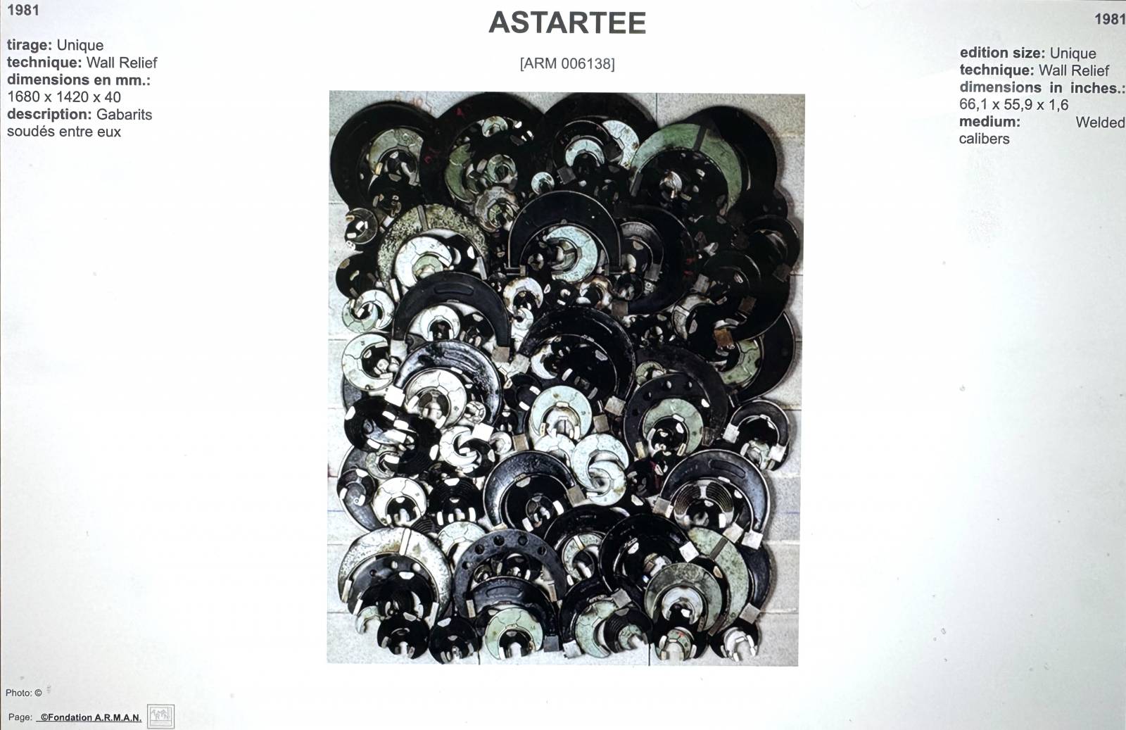 Oeuvre référencée dans les archives de Mme Durand-Ruel sous le n° 2810. Références Arman Studio n°?ARM 006138.