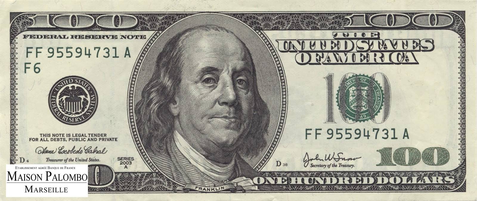 Nous disposons de dollars en stock pour vos vacances. Nous avons toutes les coupures de disponibles (billets de 100 dollars, de 50 dollars, de 20 dollars, de 10 dollars, de 5 dollars, de 2 dollars et de 1 dollar).