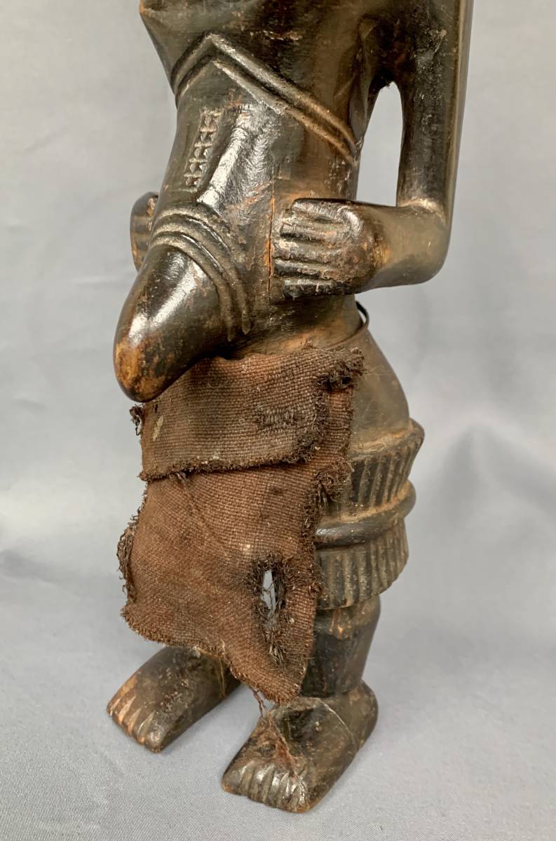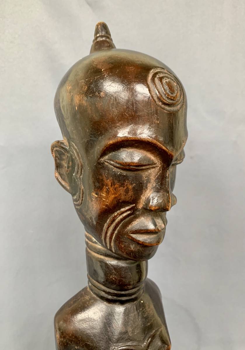 JOLIE STATUE LULUWA (RDC - ZAIRE CONGO) FÉMINITÉ DE CHARME EN BOIS ET TISSUS.