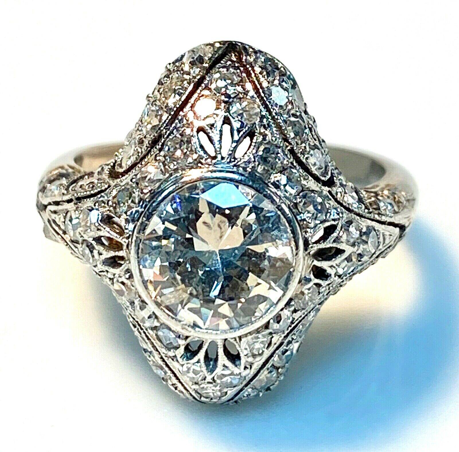 Cette bague (aussi appelée anneau de cocktail) était, comme les autres bijoux, surdimensionnée. Une grosse pierre, diamant ou de couleur, ou des motifs en diamants sur de l’or, voilà le style des bagues de l’époque.