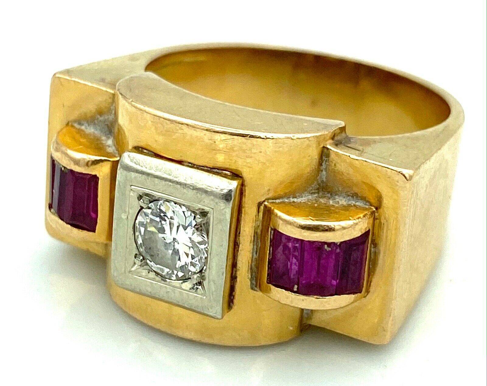MAGNIFIQUE BAGUE TANK OR 18 CARATS - Diamants 0,50 carat et rubis - 15,18 g