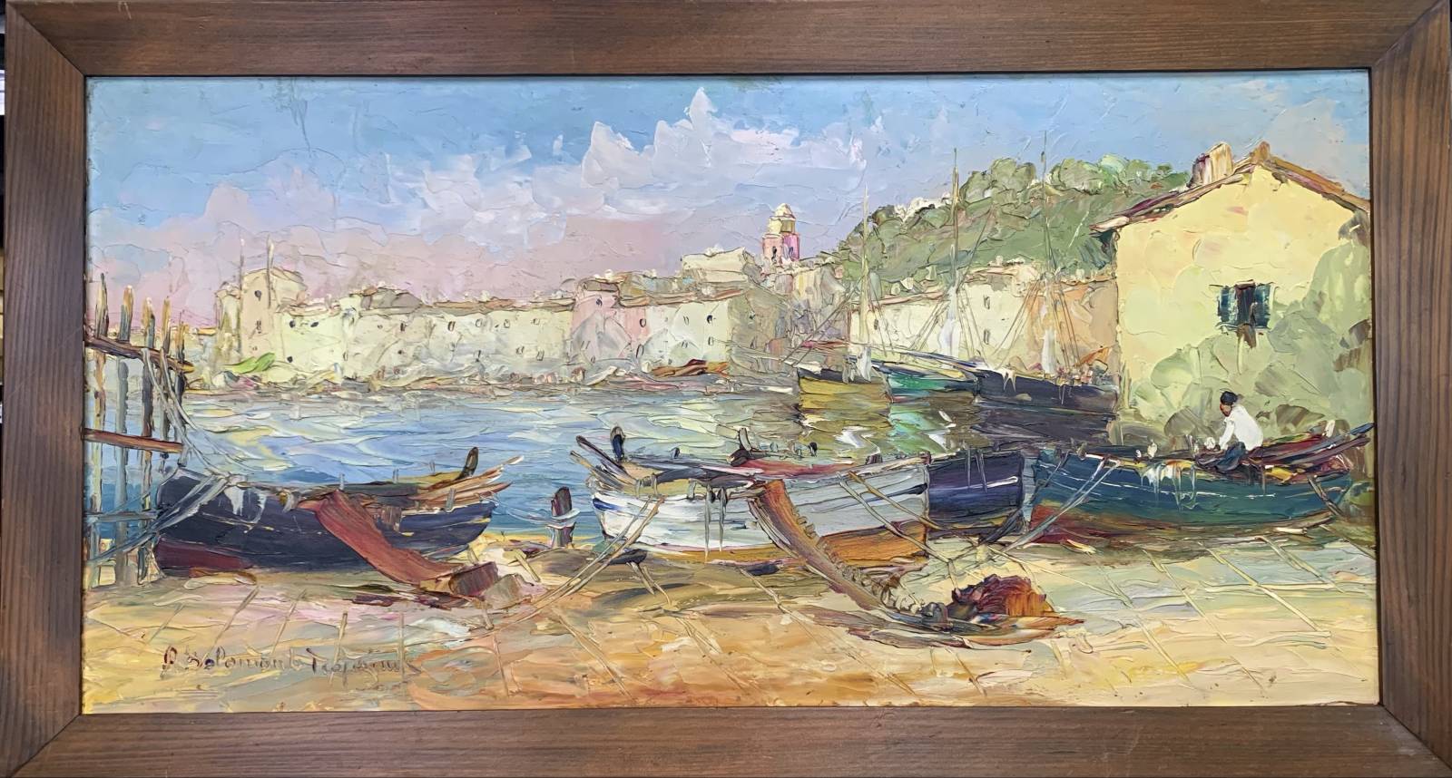 Accueil > Antiquité > TABLEAU HUILE SU TOILE PORT DE SAINT TROPEZ - PÉCHEURS SALOMON LE TROPEZIEN