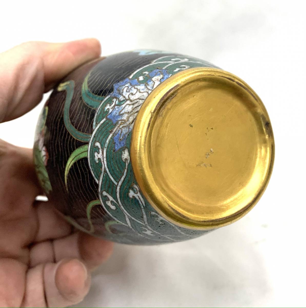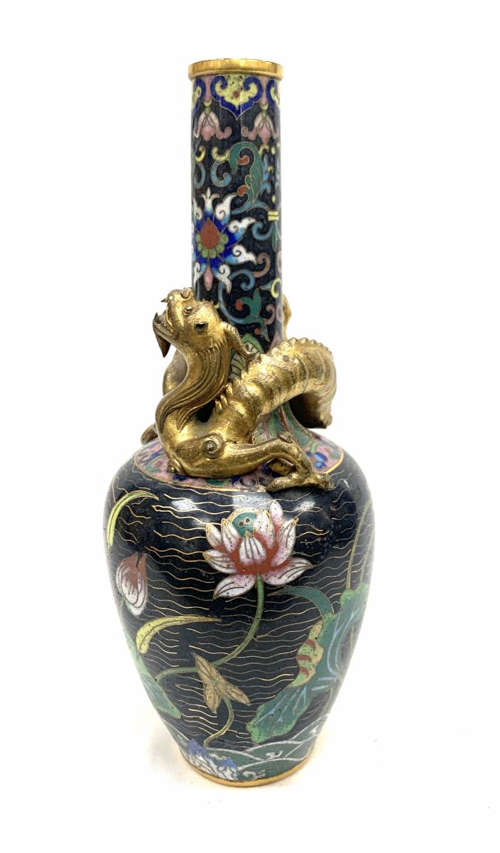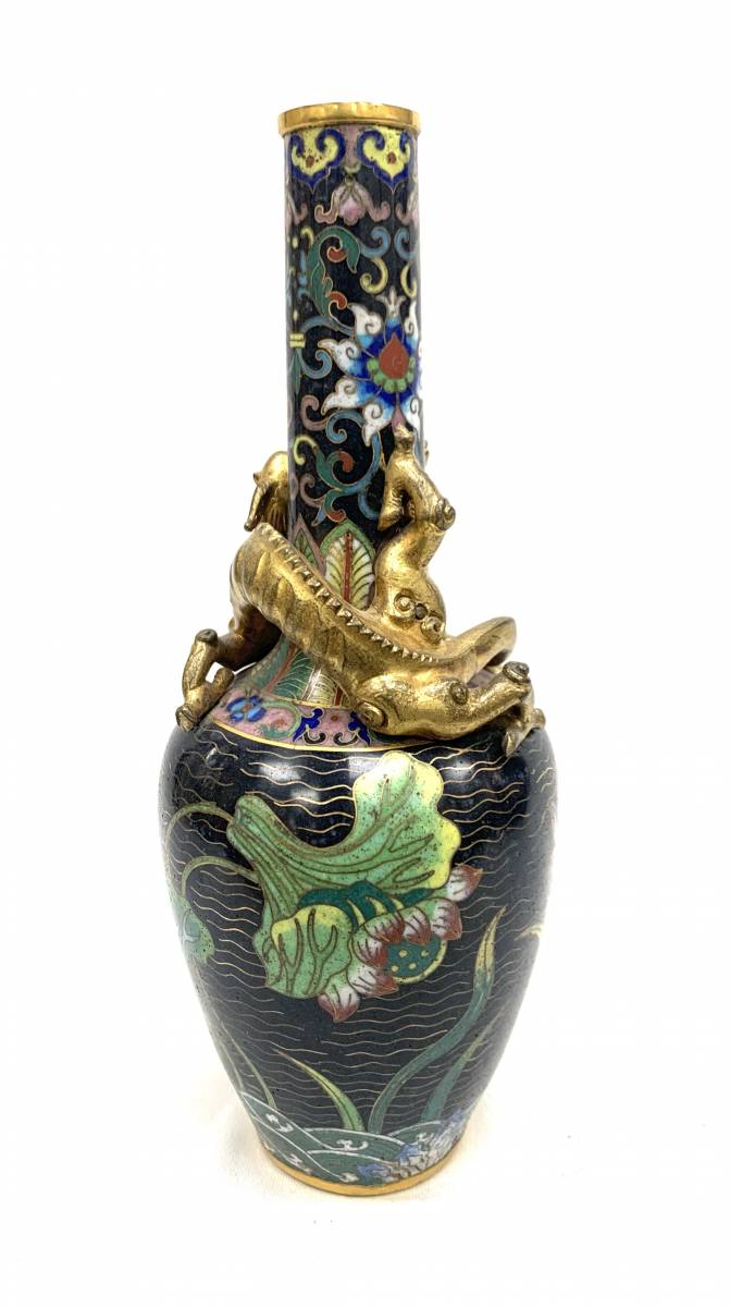 Élégant vase balustre en bronze doré et émaux cloisonnés,