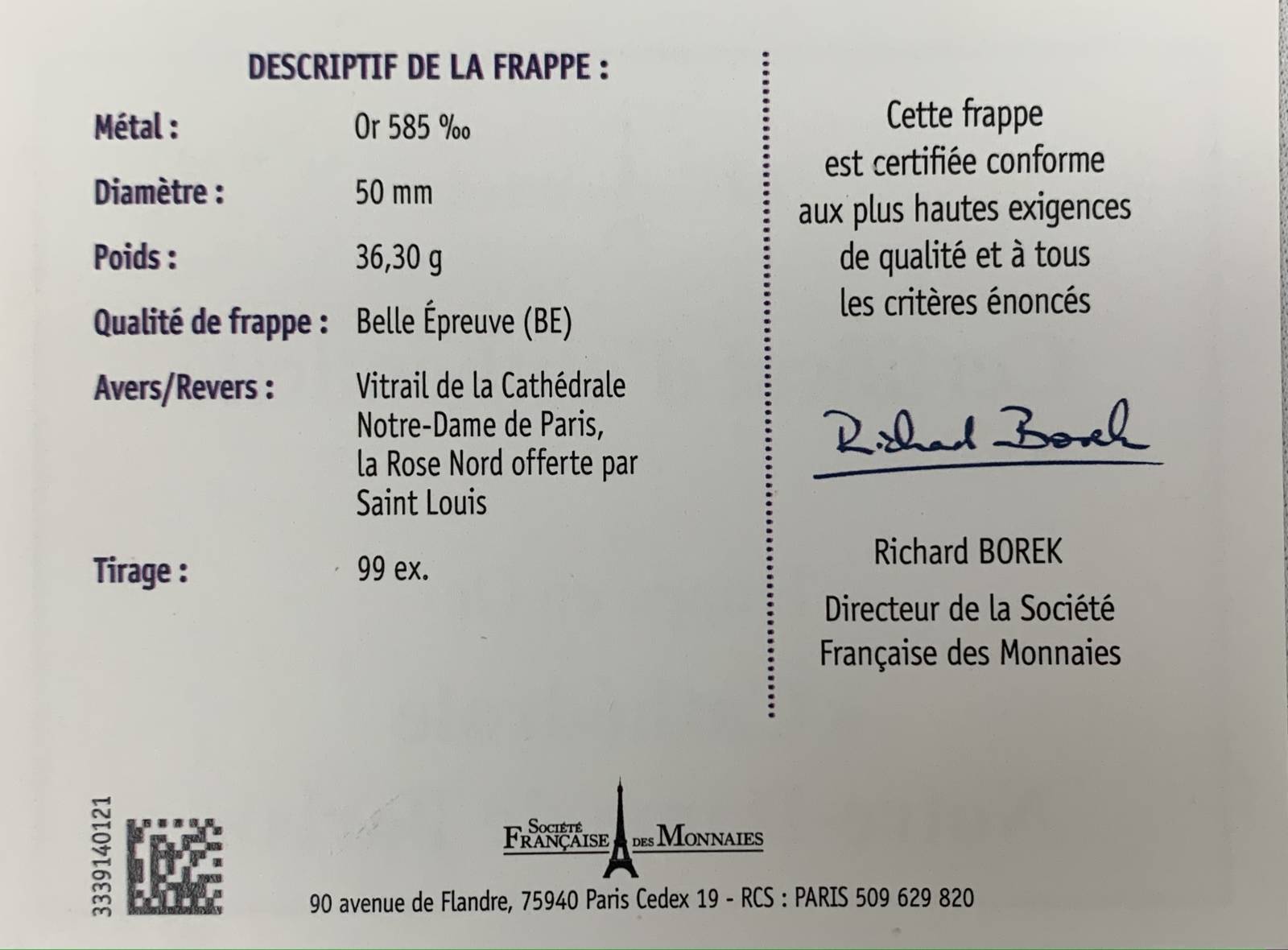 En raison de ses caractères stylistiques, la rose du bras nord est considérée comme antérieure à celle du bras sud. Dans l’état actuel des connaissances sur la succession des architectes de la cathédrale, elle est attribuée à Jean de Chelles et à la décennie 1250. Elle a été refaite à l’identique par Viollet-le-Duc en 1862-1865.